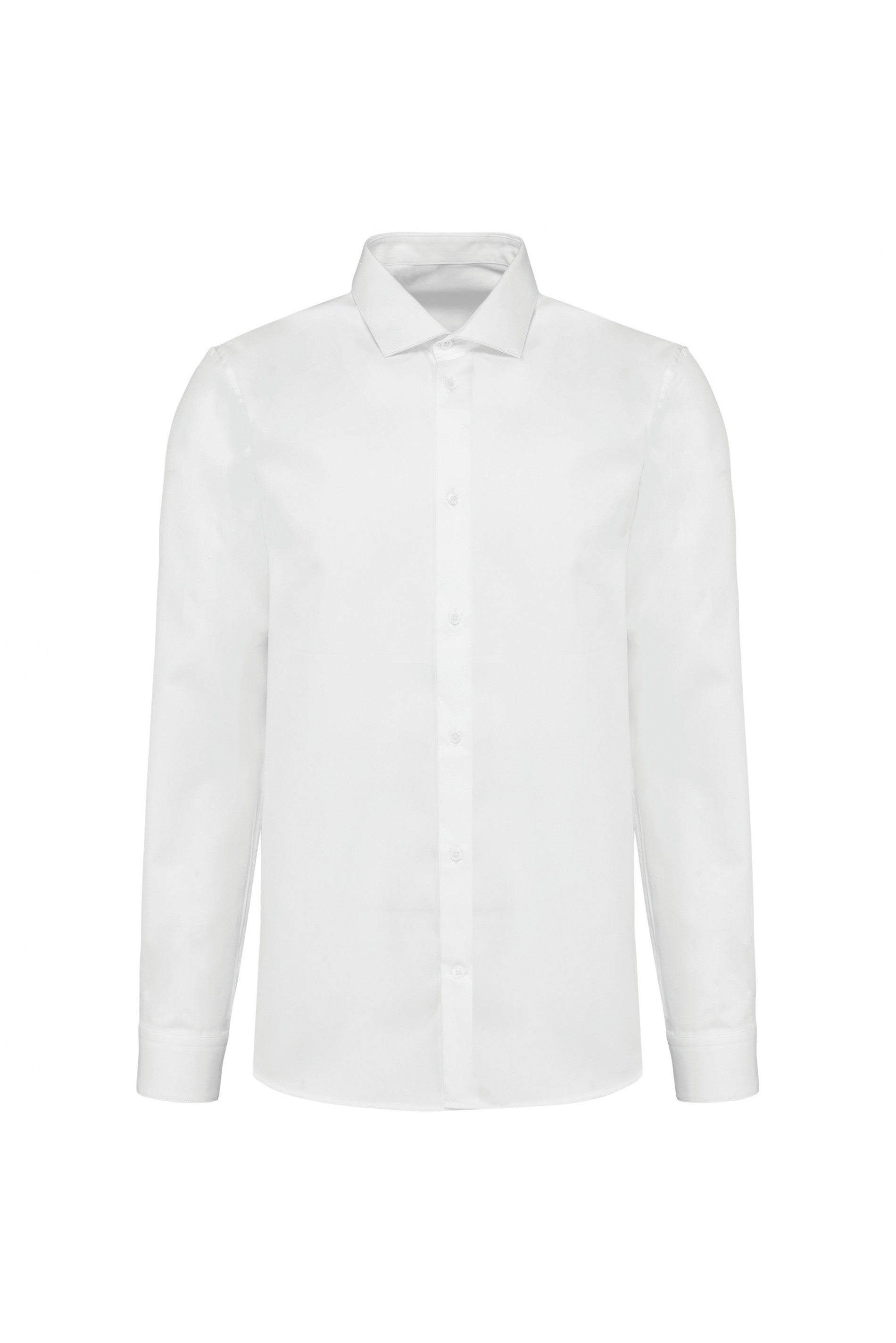 Cette chemise en twill 100% coton combine élégance et praticité. Dotée d'un traitement easy care pour un entretien facile et conçue avec un fil double retors 80x2, elle assure à la fois confort et durabilité. Le col italien, agrémenté de baleines amovibles, et les boutons en nacre accentuent son raffinement. L'empiècement au haut du dos et les deux pinces assurent une coupe ajustée, tandis que les hirondelles, petits triangles de tissu, renforcent la structure de la chemise aux jonctions. Les poignets, munis de deux boutons à angles arrondis, complètent son design soigné, avec des hirondelles de renfort pour une finition impeccable.